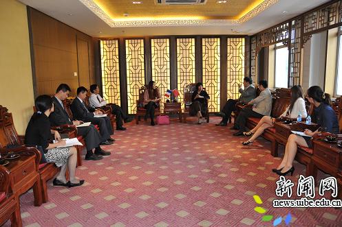2012年5月16日,校党委书记王玲、副校长赵忠秀会见了来访的法国INSEEC教育集团亚洲区负责人