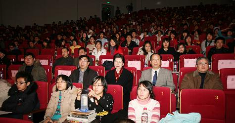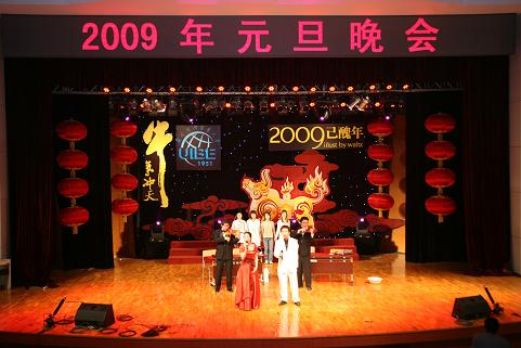 由校团委、校学生会、校艺术中心联合举办的2009年元旦文艺晚会——“颂奥运盛事,奏改革华章”在图书馆报告厅盛大开场。校长陈准民,校党委副书记杨逢华、陈建香等与师生们一起欣赏晚会。