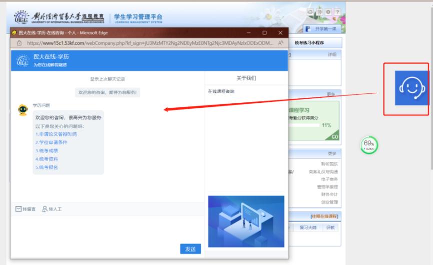 本次实践报告将通过《大数据决策》实训系统完成,请点击学习平台左侧菜单“我要学习”中“实践报告”按钮进入系统。(如果进入学习平台后无法正常登录系统,可以从如图所示的“在线咨询”里寻求支持或者向所属学习中心教务老师反馈)